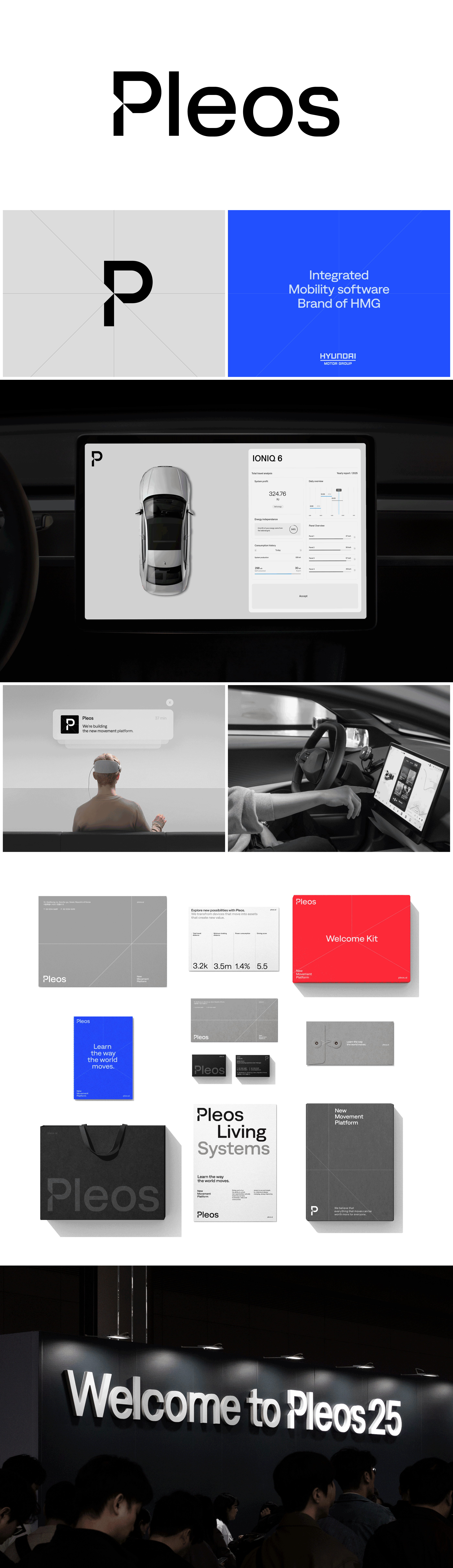 Pleos is the new movement platform and the integrated mobility software brand of HMG. By connecting all dimensions of mobility into an ecosystem through the realization of SDx(Software-Defined Everything),Pleos aims to create a world where everyone can experience equal freedom of movement.form & function collaborated with HMG’s AVP Division and SDV Communication Teamto develop the brand identity for Hyundai’s new software brand, Pleos, as well as the key visualfor its developer conference, Pleos 25.