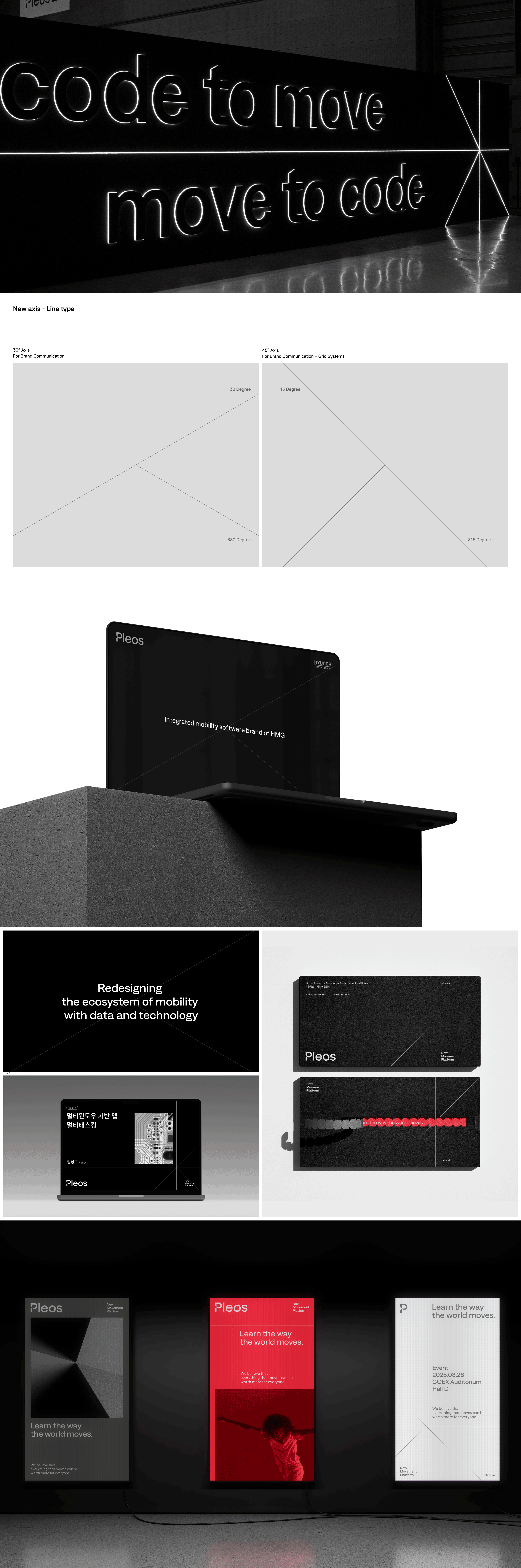 The key concept of Pleos’ brand design, New Axis, serves as a core visual motif that extends across the entire brand system. It communicates Pleos’ identity as a New Movement Platform, shaping an ecosystem of mobility across both physical and digital dimensions. New Axis is based on a line-type structure, and is designed to evolve continuously over time. As it develops into various visual forms, it accumulates into a library of brand elements that represent the dynamic and ever - evolving nature of Pleos. The 3D version of New Axis was specially developed for Pleos 25, the brand’s first developer conference, reflecting the multi-dimensional and future-oriented vision of the brand.
